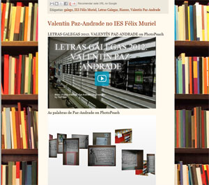Espazo creado con finalidade didáctica, para ser utilizado nas aulas, no que se reuniron os recursos atopados na rede ao longo do curso 2011-2012, en torno a Valentín Paz-Andrade, autor homenaxeado no día das Letras Galegas, xunto coas producións e creacións do alumnado de 3ºESO do IES Félix Muriel.