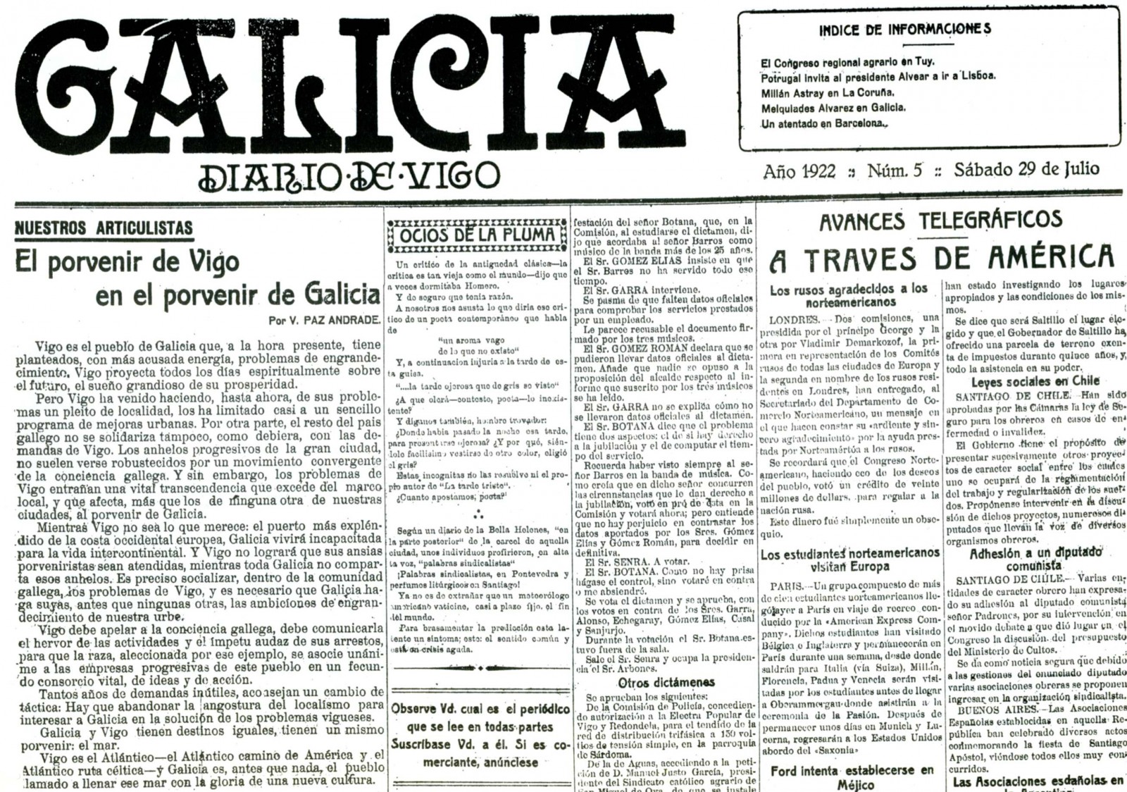 Valentín Paz Andrade e o xornal Galicia, edición especial |