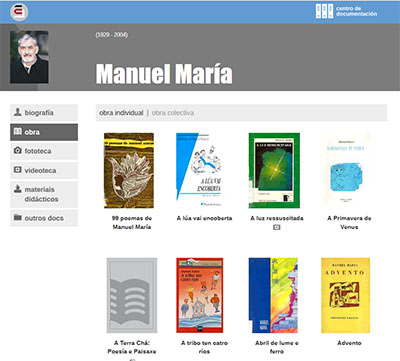 Manuel María. Obra individual e colectiva na páxina da AELGAsociación de Escritores en Lingua GalegaManuel María. Día das Letras Galegas 2016